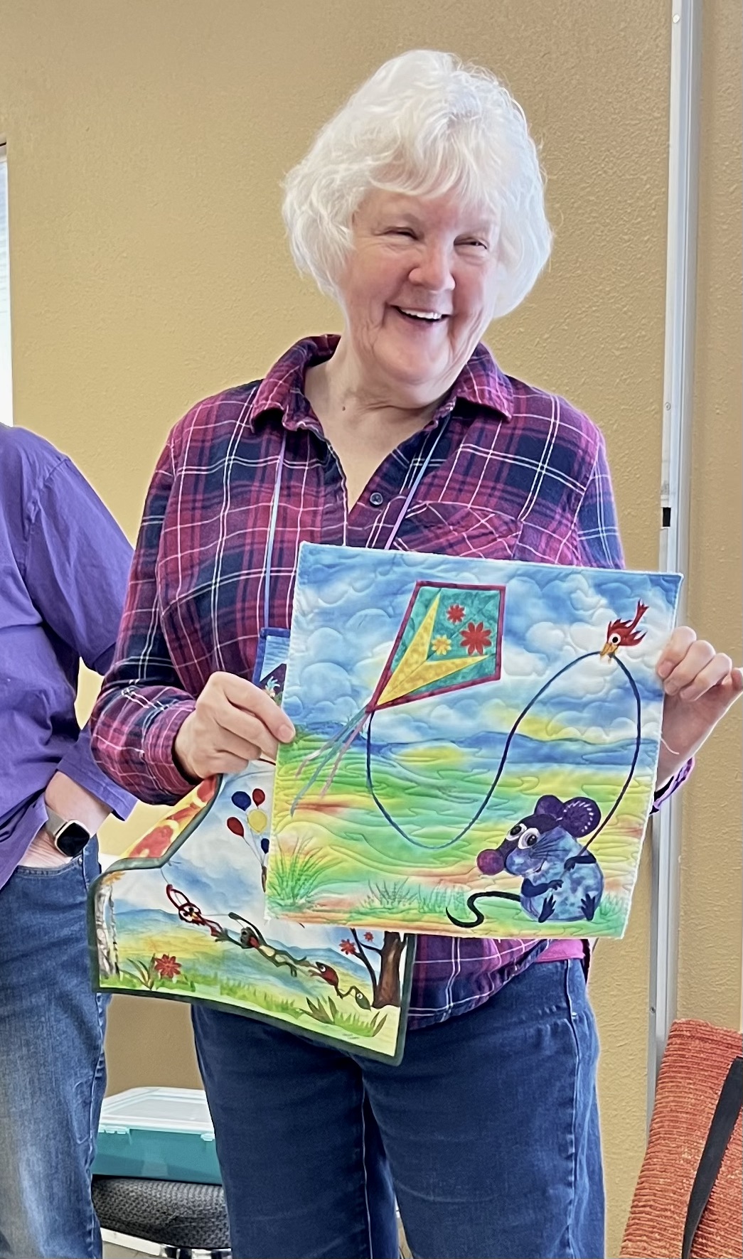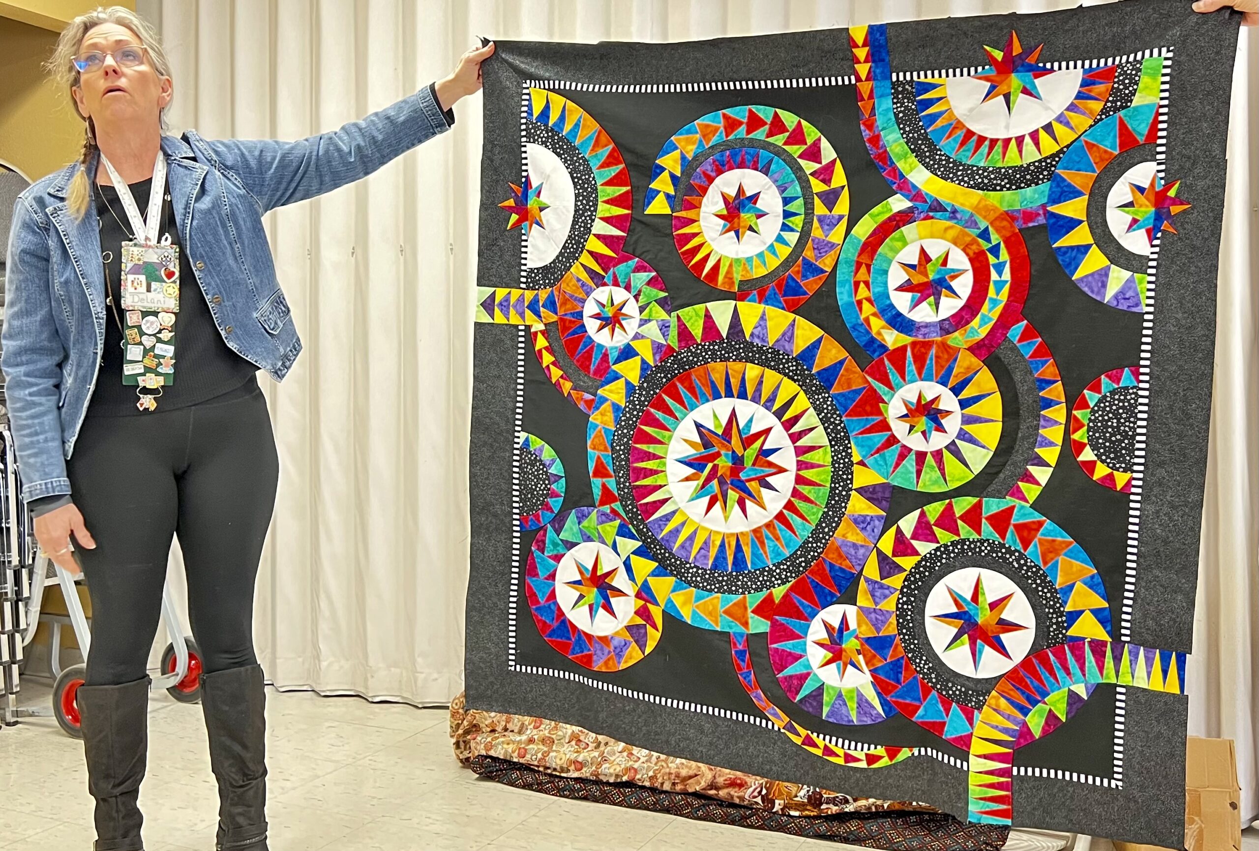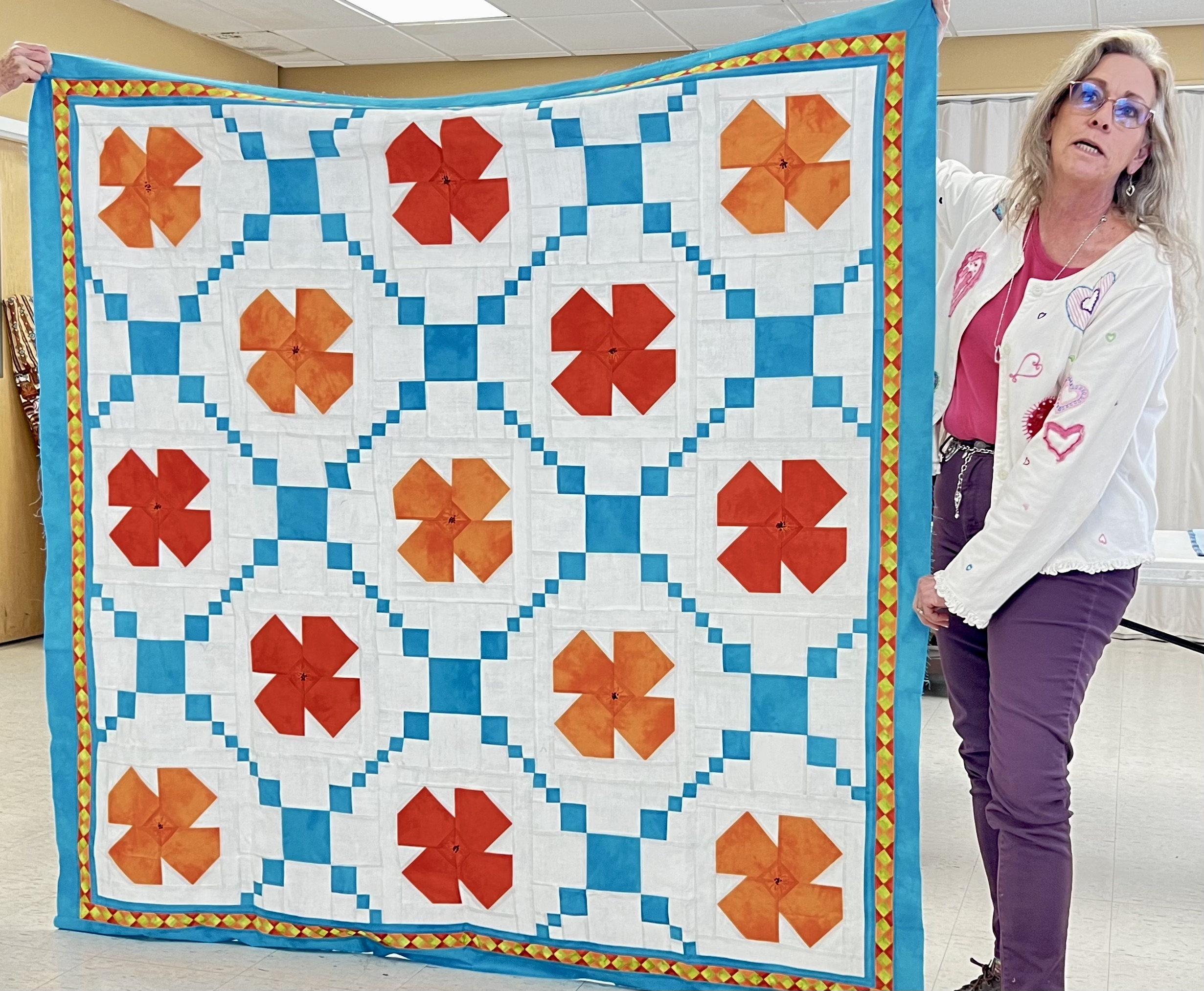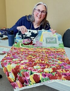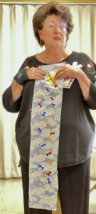 President Carla Hellwege displayed a Bow Tie block, one of the 2025 Challenge Quilt requirements