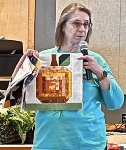 President Carla Hellwege displayed a Bow Tie block, one of the 2025 Challenge Quilt requirements
