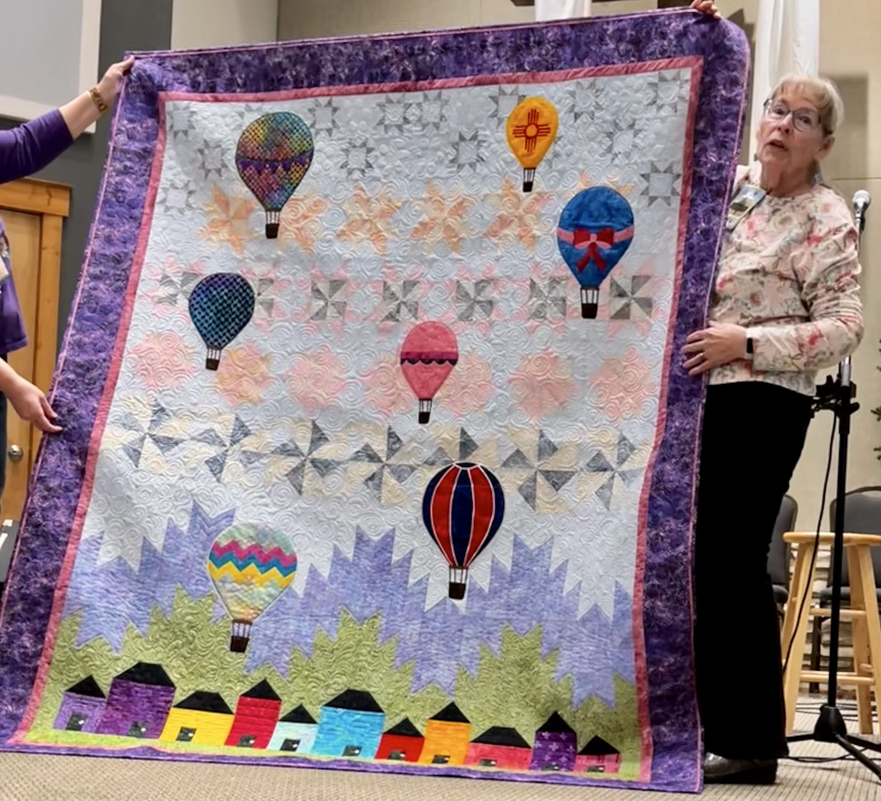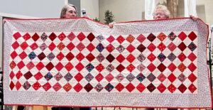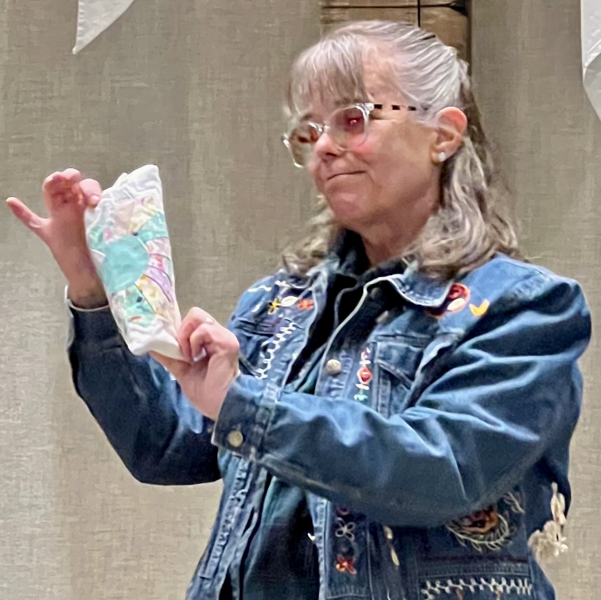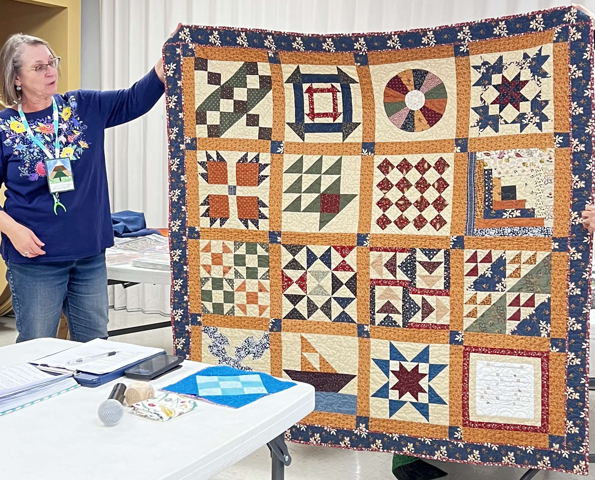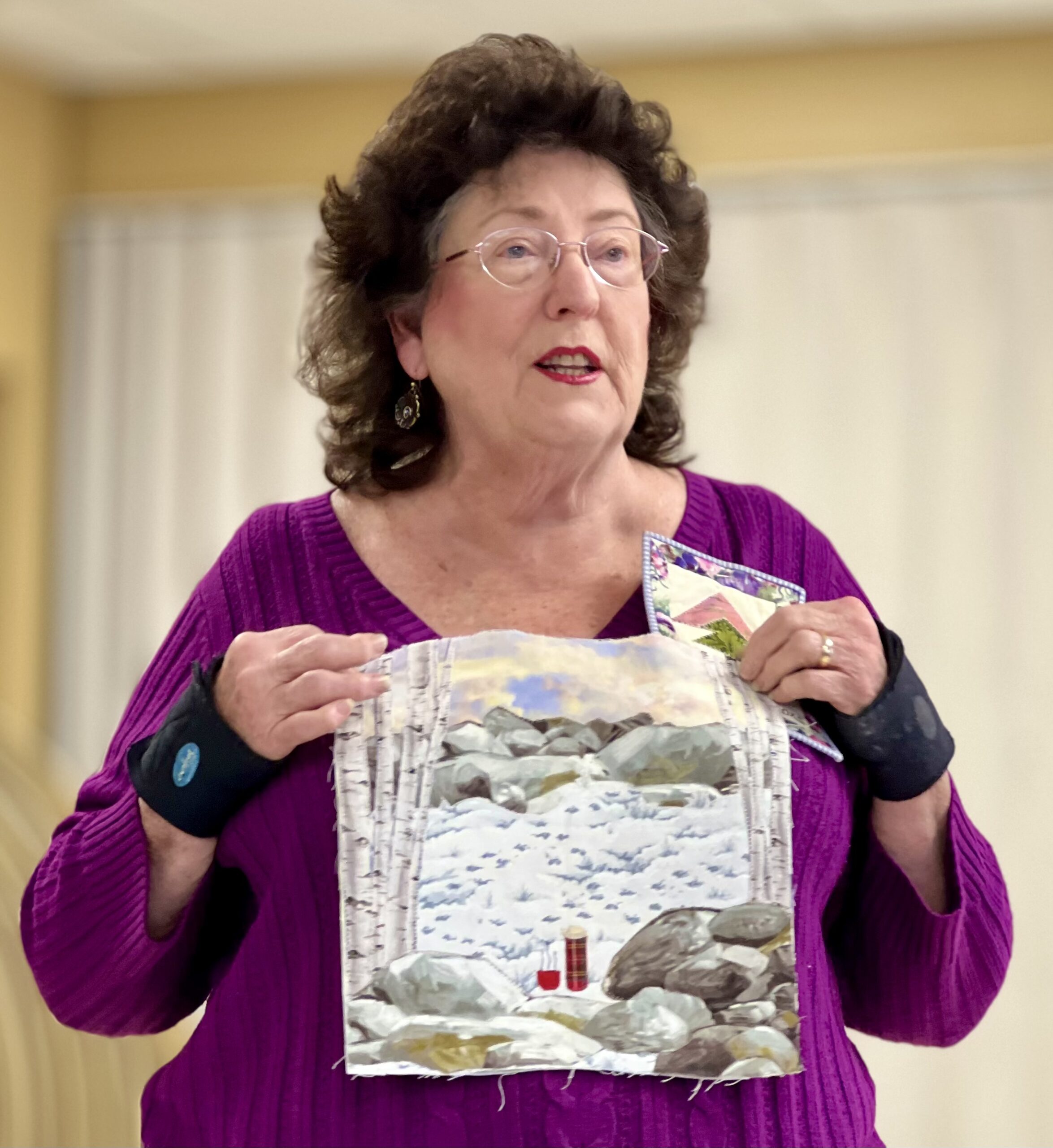 President Carla Hellwege displayed a Bow Tie block, one of the 2025 Challenge Quilt requirements