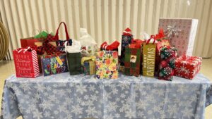 The gifts awaiting the White Elephant Exchange