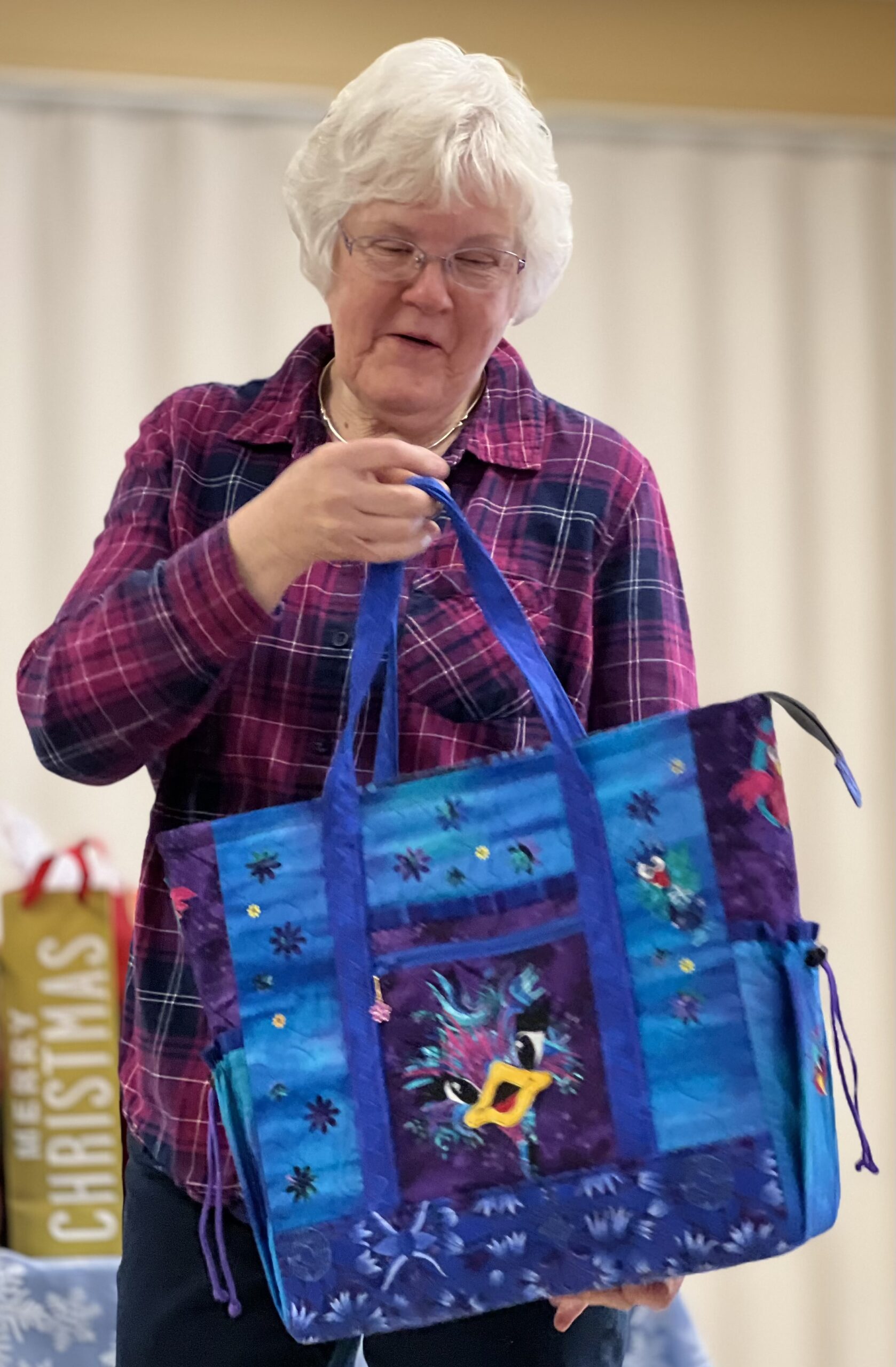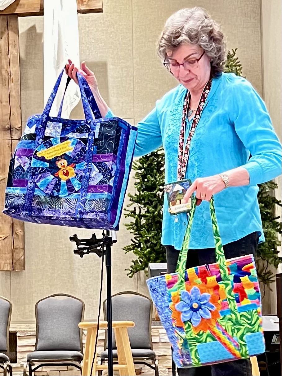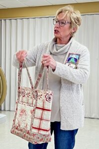 Lisa Price showed us her travel iron tote. She will be teaching a class on how to make one after the June meeting.